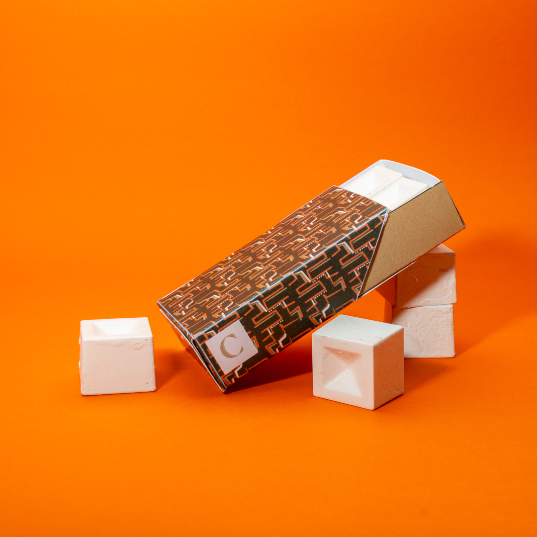 Het thema was ‘Continenten’, en ik koos voor Noord-Amerika. Binnen dit continent verschillen de landen sterk op visueel en cultureel vlak, maar ze delen één gemeenschappelijk element: bergen. Elk land heeft zijn eigen type berglandschap, en daarop heb ik mijn patronen gebaseerd. De verschillende patronen geven elke verpakking een eigen identiteit, terwijl ze dankzij het gedeelde bergthema toch één geheel vormen. Door te variëren in de ‘cut-outs’ van de verpakking ontstaat herhaling en ritme, wat zorgt voor visuele samenhang